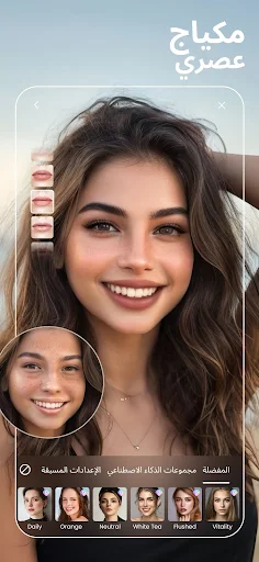 أضيفي مكياجًا افتراضيًا، ضعي أحمر الشفاه، حددي الحواجب والرموش، وأزيلي حب الشباب في ثوانٍ.